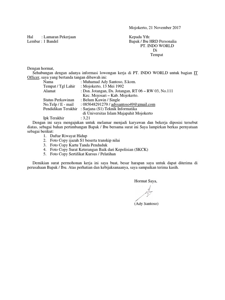 Gaji Pt Indo World Ngoro - Cp Ipg 141111 Smk 150416 - Indo world untuk bagian it officer, saya yang bertanda tangan dibawah ini: